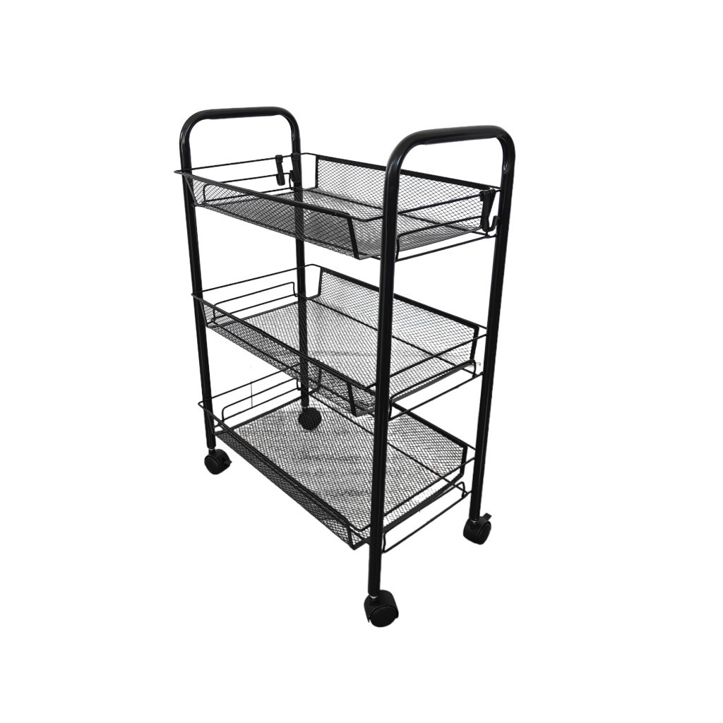 Показати оптові ціниЕтажерка з полицями для кухні та ванної на колесах Bonro B-073 чорний (42400112)